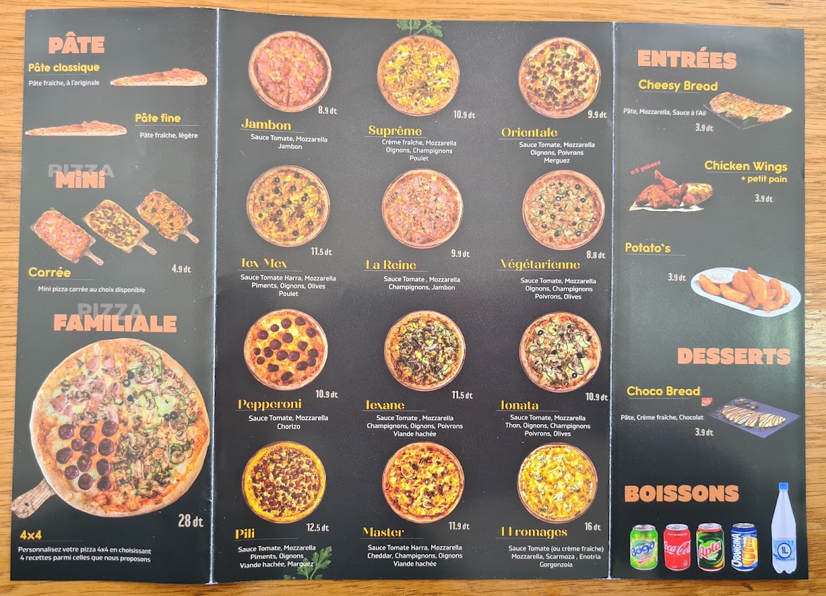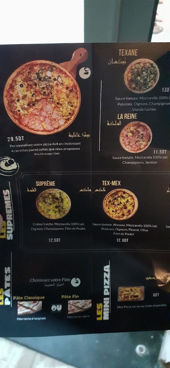 The Pizza Tonata, a hearty and flavorful choice, is a must-try for those who enjoy a mix of savory ingredients. Another classic option is the Pizza Classique Jambon, featuring a delicious ham topping. If you're a fan of seafood, the Pizza Classic Thon is a perfect option with tuna at its core, offering a fresh and light taste. For those who like a bit of spice, the Pizza TEX-MEX is an exciting pick with bold, zesty flavors, while the Pizza Pepperoni brings a traditional touch with its perfectly spiced pepperoni slices.